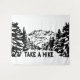 Monochrome illustration with view to mountains and snowy winter wood drawing in woodcut style