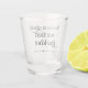 Black and white typography design wedding keepsake favours for your wedding. Shot glass that reads - Take a shot we tied the knot. Customise with your names and wedding date.