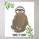 Mindful Take It Easy Meditating Brown Sloth poster to hang up.