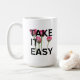 Start your day on a positive note with this inspiring "Take It Easy" mug. Featuring vibrant pink roses and bold typography, this mug combines elegance and motivation, making it perfect for your morning coffee or tea. Crafted from durable ceramic with a high-gloss finish, it's both microwave and dishwasher-safe. Ideal as a gift for loved ones or a treat for yourself, this mug is a daily reminder to embrace calm and simplicity.