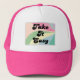 Add some retro flair to your wardrobe with this Take It Easy Trucker Hat. If you are on the go, headed to the beach, or hanging with friends, this trucker hat is perfect, With it's retro font and colourful background, it matches every style.