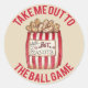 This is a fun sticker to give out. It features a bag of peanuts and says take me out to the ball game with a vintage look.