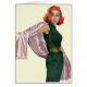 Artist: Coby Whitmore | Red haired woman in a green dress holding out a pink shaw.