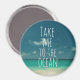 Take Me to the Ocean Quote Typography. Beautiful retro inspired beach scene with blue tint (ocean, sand, skies) frame the fun quote/saying 'take me to the ocean'. Great for the beach lovers or anyone that absolutely loves the ocean. Relax, chill and get away.