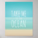 Take me to the ocean... where life is better. Contemporary typography in white is printed on a gradient background of sea, sand and sky colours.