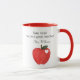 Imagine surprising your favourite teacher with this inspirational mug or buy it for yourself. Design features a customisable Title and name along the top. It also includes cute, fun image of a book worm reading a book on top of a red apple with a white heart in a watercolor style. Perfect item to add to the classroom!