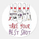 These pins have been through the wars. Take your best shot, cause they've had it all. A great humourous design for bowling fans!