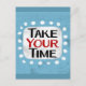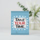 "Take Your Time" is a cute inspirational or motivational quote with a white accent shape surrounded by white textured whimsical dots.