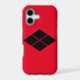 Keep your Apple iPhone safe with this Case-Mate Tough iPhone XR Case with the Japanese Takeda kamon in black. The background is red.