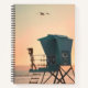 This is a spiral type of notebook. On both front and back covers is a rendering done in acrylic paint of a photographer taking photos on a lifeguard post or station. It looks like the start of the evening. Title of the rendering is: Taking The Perfect Picture.