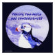 A digital painting of an Atlantic Puffin, with ocean waves crashing into the stone shoreline. The artwork is in a circle. There a purple hue cast over the image. Above the puffin's head in a purple font is: "Taking Too Much Has Consequences". Image Copyright ©2024 Kimberly J Tilley.