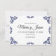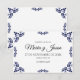 This Talavera Black Floral Minimalist Spanish Wedding Save the Date design features a minimalist approach with delicate, symmetrical black floral motifs placed in each corner and along the edges. The small, leaf-like shapes create a sense of movement while maintaining an airy, open space in the center, allowing for ample text placement. The simplicity and elegance of the pattern evoke traditional Talavera tiles, giving the design a classic Mexican artisanal feel.