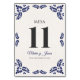 Talavera Blue Floral Minimalist Spanish Wedding Table Number
