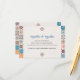 This Talavera Colorful Floral Fiesta Spanish Wedding Enclosure Card design features vibrant, symmetrical borders inspired by traditional Talavera patterns, with intricate geometric motifs running down both sides. The color palette incorporates classic Talavera hues like cobalt blue, orange, and turquoise, echoing the ceramic artistry of Puebla, Mexico. The central space is framed by colorful tile designs, providing a striking yet balanced backdrop, perfect for a Mexican-themed celebration.