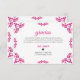 This Talavera Pink Floral Minimalist Spanish Wedding Thank You Card design features a minimalist approach with delicate, symmetrical pink floral motifs placed in each corner and along the edges. The small, leaf-like shapes create a sense of movement while maintaining an airy, open space in the center, allowing for ample text placement. The simplicity and elegance of the pattern evoke traditional Talavera tiles, giving the design a classic Mexican artisanal feel.