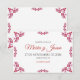 This Talavera Red Floral Minimalist Spanish Wedding Save the Date design features a minimalist approach with delicate, symmetrical red floral motifs placed in each corner and along the edges. The small, leaf-like shapes create a sense of movement while maintaining an airy, open space in the center, allowing for ample text placement. The simplicity and elegance of the pattern evoke traditional Talavera tiles, giving the design a classic Mexican artisanal feel.