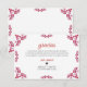 This Talavera Red Floral Minimalist Spanish Wedding Thank You Card design features a minimalist approach with delicate, symmetrical red floral motifs placed in each corner and along the edges. The small, leaf-like shapes create a sense of movement while maintaining an airy, open space in the center, allowing for ample text placement. The simplicity and elegance of the pattern evoke traditional Talavera tiles, giving the design a classic Mexican artisanal feel.