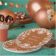Terracotta vintage Mexican talavera boho wedding monogrammed paper plates template personalised wedding paper plates, terracotta brown and white Talavera folk art wedding paper plates personalised Mexican wedding table decor
