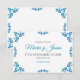 This Talavera Turquoise Floral Minimalist Spanish Wedding Save the Date design features a minimalist approach with delicate, symmetrical turquoise floral motifs placed in each corner and along the edges. The small, leaf-like shapes create a sense of movement while maintaining an airy, open space in the center, allowing for ample text placement. The simplicity and elegance of the pattern evoke traditional Talavera tiles, giving the design a classic Mexican artisanal feel.