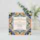 Azulejo blue Portuguese Talavera tiles vintage Mexican wedding rehearsal dinner invitation cards template Mediterranean ornate Talavera tile pattern wedding invitation with wedding details and qr rsvp at the back editable template instant digital download Hacienda style wedding invitations