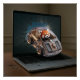 The photo shows a modern laptop placed on an elegant brown wooden table. The laptop’s screen has been dramatically shattered by a tiny red panda who broke through while playing with a special, lightning-fast car shaped like a computer mouse. Maybe the panda simply veered off the road, or perhaps made a quantum leap—in any case, it suddenly found itself in another world.