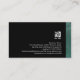 This striking talent manager professional business card features a elegant abstract turquoise grunge gradient on the lower border. Your name and title appear just above this patterned border, over a jet black background. The same patterned theme appears on the back of the card, except the stripe is on the right border. Your business logo and contact details appear on the black section of the card. This business card design makes a striking first impression and is perfect for high-impact, publishing, printing, literature, literary arts, writing, artistic skills, professional abstract themes.