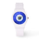 Ward of the ill effects of Evil Eye with this amulet design featuring one evil eye with solar rays against a blue background