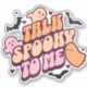 Colourful grunge Halloween "Talk spooky to me" text design with cute, funny, smiley ghosts, hearts and bats decoration