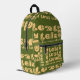 Lightweight and durable, our custom all-over-print Backpack is just what you need. The spacious interior is ideal for travel, school, gym, or any mobile storage need. Bring your stuff with you in style! Features Adjustable padded shoulder straps, two chambers on the inside for laptop storage, mesh side pockets and an identification label.
