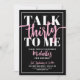 Introducing a fun and sassy 30th birthday party invitation, perfect for celebrating this milestone with flair. The design features a bold black background with the playful phrase "Talk Thirty to Me" displayed at the top in a mix of bold and script typography. The fonts are a striking combination of pink and white, creating a vibrant contrast against the dark backdrop. A clean white frame around the edge adds a touch of modern elegance to the overall look. This invitation is ideal for a chic and stylish 30th birthday celebration with a bit of attitude. The text throughout the invitation combines a mix of simple modern and script fonts in white and pink, creating a striking contrast against the black backdrop. This invitation is ideal for a chic and stylish 30th birthday celebration. The background colour, fonts, and frame can all be customised to match your style. Talk Thirty To Me 30th Birthday Party Invitation Sassy Fun Humourous Thirtieth Celebration.