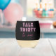 Talk THIRTY To Me 30th Birthday Party Neon Pink Stemless Wine Glasses features a modern pink neon text "Talk Thirty to me!" in modern calligraphy script on a black background. Personalised with your custom name. Designed by Evco Studio www.zazzle.com/store/evcostudio