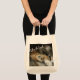 The printing came out very well, better than I had anticipated. The natural color fabric is sturdy with strong seams and comfortable handles. This tote fits easily over my shoulder. As it is filled, the bottom flattens out--very cool! I would buy this product again. This grocery tote holds a lot of groceries! The image quality was very good. The colors were a little darker than I had expected. The darkness may have been due to printing on a natural color fabric rather than on white. The cat design is attractively centered on the tote. The spirit of the design is very lively, just as it appears on the Zazzle website.