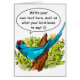 A drawing of a funny looking blue ringneck parrot with summer foliage on the background. :) Buy one or more greeting cards for you and your ringneck friends!