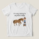 A young boy stands on a small stool, gently petting a brown horse's face, with a brush visible in his hand. The style is simple and endearing. Text: "I'm only talking to my horse today" Connected, comforting, focused, and represents the horse as a trusted, non-judgmental confidant and best friend.