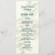 Tropical Christmas wedding themed menu template. Tall, 4x9 inch size is decorated, with white sea stars and holly leaves, on both sides. Off white colour with dark blue text to personalise in three places, with names at the top. Title of menu "Wedding Menu" and list of food served in paragraph form. Add, or remove, spaces to fit your list of menu items. Reverse is dark green. You may download this design for personal use.