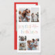A modern and simple family photo collage holiday card with 6 custom photos and personalised greeting. The front of the card is white and says "joyful holidays" in colourful serif font lettering.