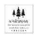 Return address rubber stamp features your name and return address beneath a trio of pine tree silhouettes, perfect for forest, mountain or woodland homeowners, or as a charming finishing touch for your holiday cards.