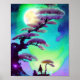 Tall purple bonsai and moon poster