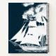 Tall ship sailing smoothly and a hovering fluffy cloud as company...perfect day. All a white silhouette over an elegant dark blue background,