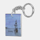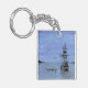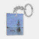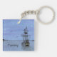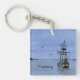 A watercolor painting of a large sailing ship silhouetted against the evening sky adorns this customisable keychain!