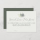 These easy-to-personalise wedding invitation enclosure cards are a perfect fit for your wedding in a woodland or mountain setting. They have a simple, but elegant style with an accent illustration of a watercolor forest of tall pine trees or evergreen trees in shades of sage green, grey and pale green. The soft watercolor style has a peaceful calm quality to it, that will remind you of watching the fog rise over a wooded glade. Classic, elegant lettering in a coordinating dark sage green spells out your safety protocols message or other custom text. The reverse side is a coordinating dark sage colour.