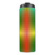 Tall tumbler with a black lid featuring a gradient design of green, yellow, and red with a subtle cross pattern, conveying a vibrant, energetic feel.