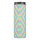 Tall tumbler with a black lid features a vibrant, geometric design of colorful concentric diamonds made from small overlapping circles, creating a lively, energetic tone.