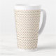 Tall white mug with a small red-and-green heart pattern, shown in two views: straight on and right angled, on a light background, conveying a simple, cheerful vibe.