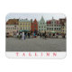 A beautiful view of market stalls and colourful houses in Town Hall Square in Tallinn in Estonia printed on a souvenir fridge magnet.