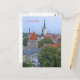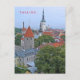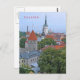 A beautiful view of Tallinn towers and rooftops in Estonia printed on a postcard.