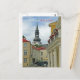 A beautiful view of buildings in Tallinn Old Town in Estonia printed on a postcard.