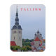 A beautiful view of a tower in Tallinn in Estonia with Alexander Nevsky Cathedral in the background printed on a souvenir fridge magnet.