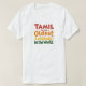This is a vibrant typographic artwork celebrating the heritage of the Tamil language. The design proudly states, "TAMIL is the Oldest Language in the World," using a playful, bold font with a distressed texture. The words are rendered in a warm colour palette of red, orange, yellow, and green, creating a cheerful and impactful statement about one of the world's longest-surviving classical languages.