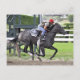 This horse was breezing on opening day at Saratoga with Tammy Fox. Feel the power and excitement in this thrilling picture of horse and rider. This grey colt is trained by Dale Romans. Fleetphoto